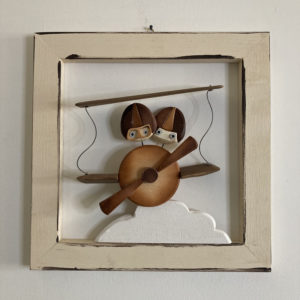 Quadro integralmente costruito in legno. La cornice è in legno di abete massello mentre i soggetti sono in legno di pioppo e/o abete.